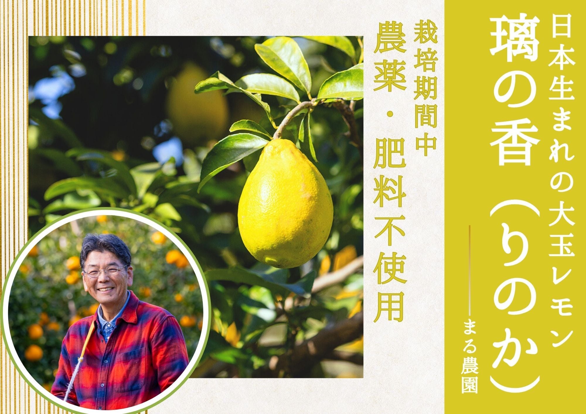 日本生まれの璃の香(りのか)という品種です。1番の特徴はその大きさ。一般的なレモンは80g〜170gほどですが、璃の香は小ぶりなものでも240gほど。大きなものは300gを超えるものもあります。また、酸味もまろやかで皮が薄く、果汁はたっぷり、種も少ないので加工にも適しています。
